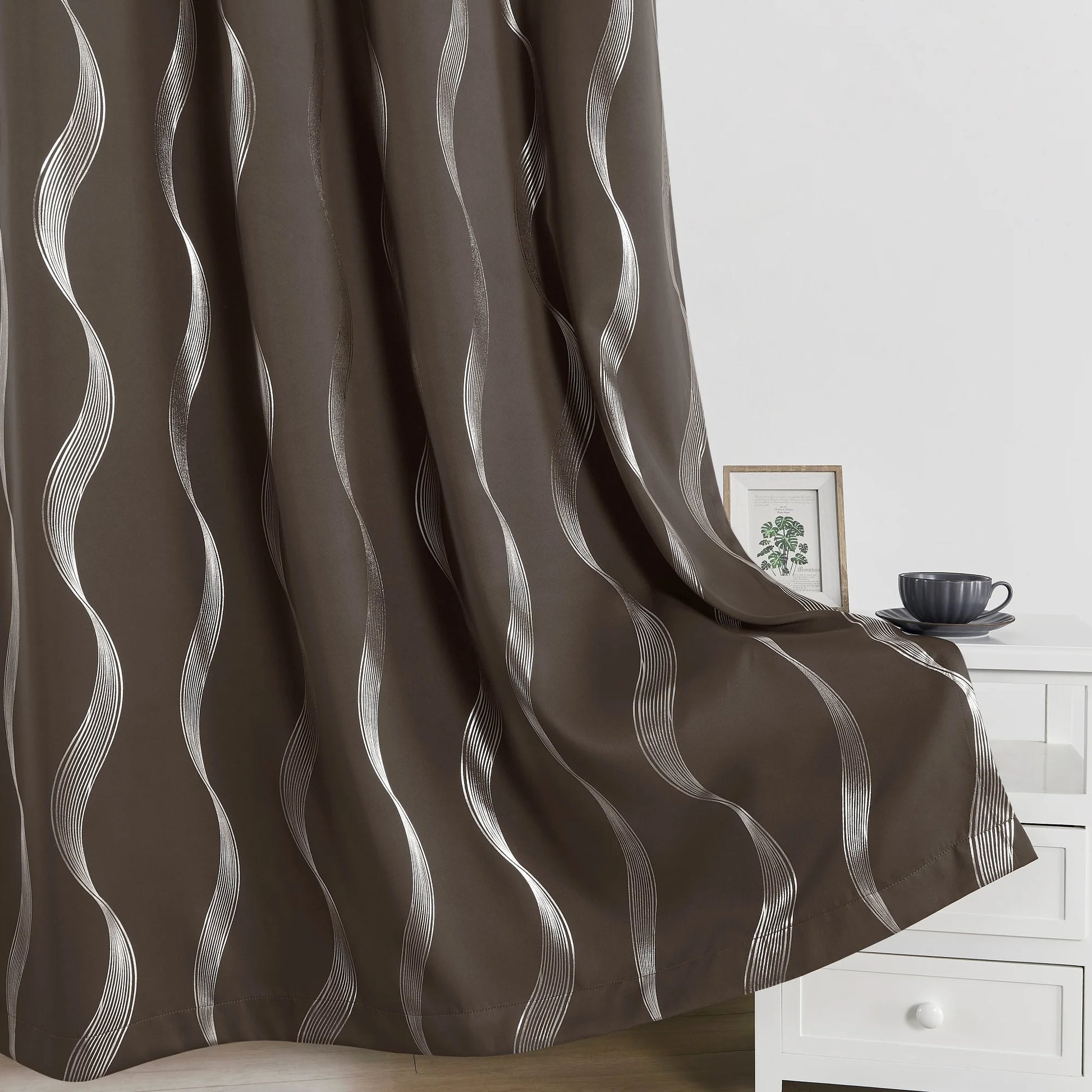 4PCS Blackout Curtains Grommet Thermal Insulated Room Darkening With Wave Foil Printed For Bedroom