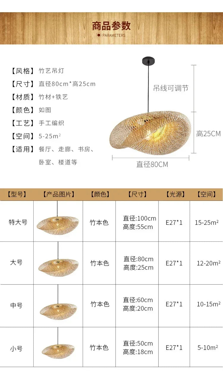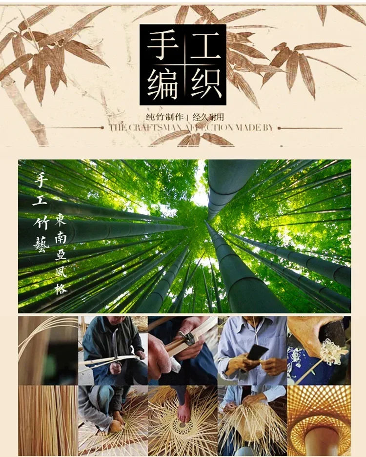 Bamboo Hand Weaving Pendant Lights 38cm Hanging LED Ceiling Lamp Chandelier Fixture Rattan Hand Craft Woven Home Bedroom Decor