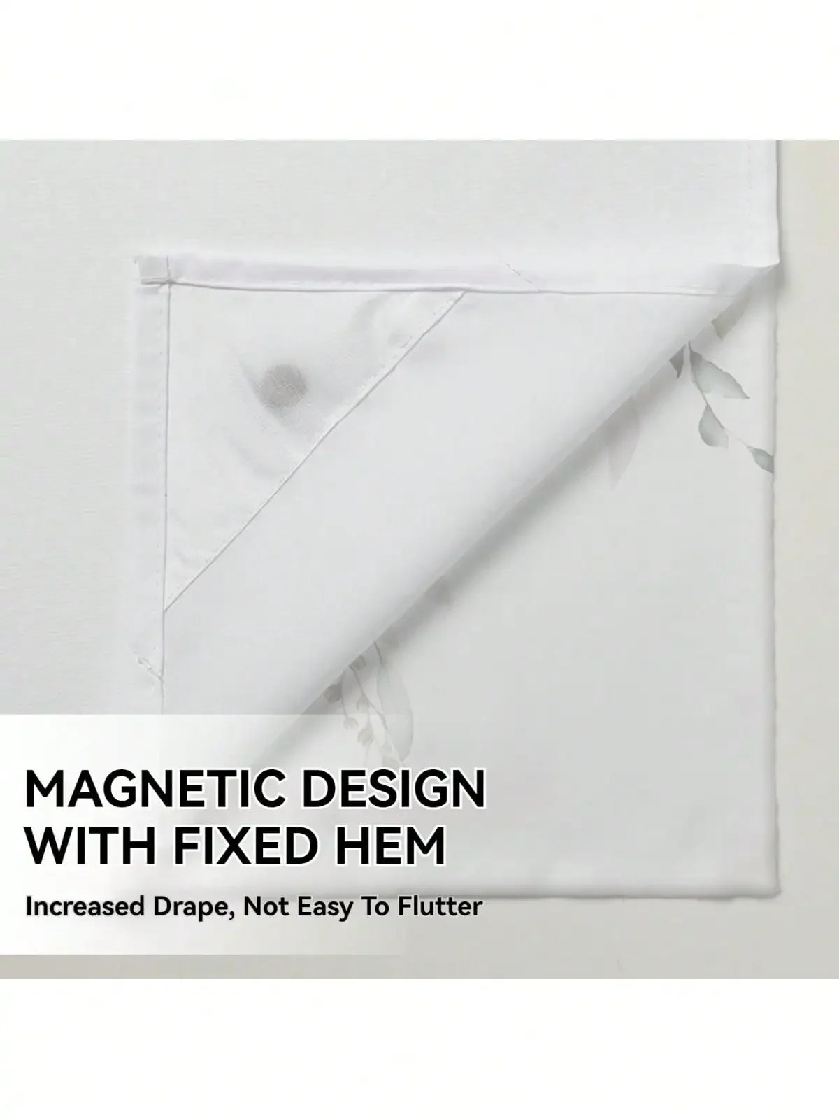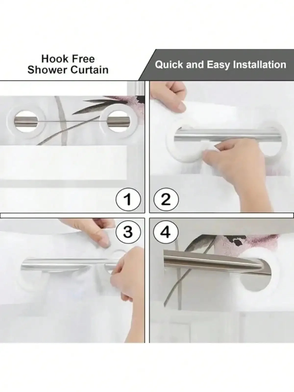 Plants Pattern No Hook Waterproof Shower Curtain, Removable With , Perfect For Bathroom Decor In Winter, Modern & Simple Design